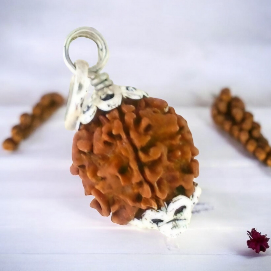 This powerful pendant features the rare 1-Mukhi Rudraksha bead, representing Lord Shiva Himself (Shiva Swaroopa), symbolizing divine power and singular focus. It is believed to grant moksha (liberation), success in leadership, and mastery over the senses, bringing the wearer immense concentration and fulfillment. This sacred bead is essential for advanced spiritual practice and achieving ultimate clarity and peace.