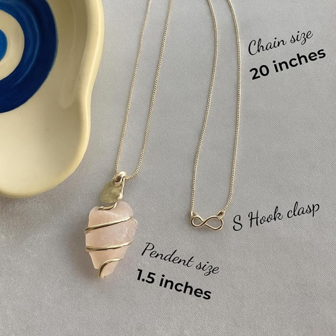 This pendant features a hand-carved Rose Quartz arrowhead, universally known as the Stone of Unconditional Love. The arrowhead shape symbolizes gentle direction, focused love, and emotional protection, while the crystal's soft, feminine energy effectively opens the heart, promotes self-love, and attracts harmonious relationships. Rose Quartz is crucial for healing emotional wounds and fostering deep inner peace. This piece is essential for radiating love and emotional well-being throughout your life.
