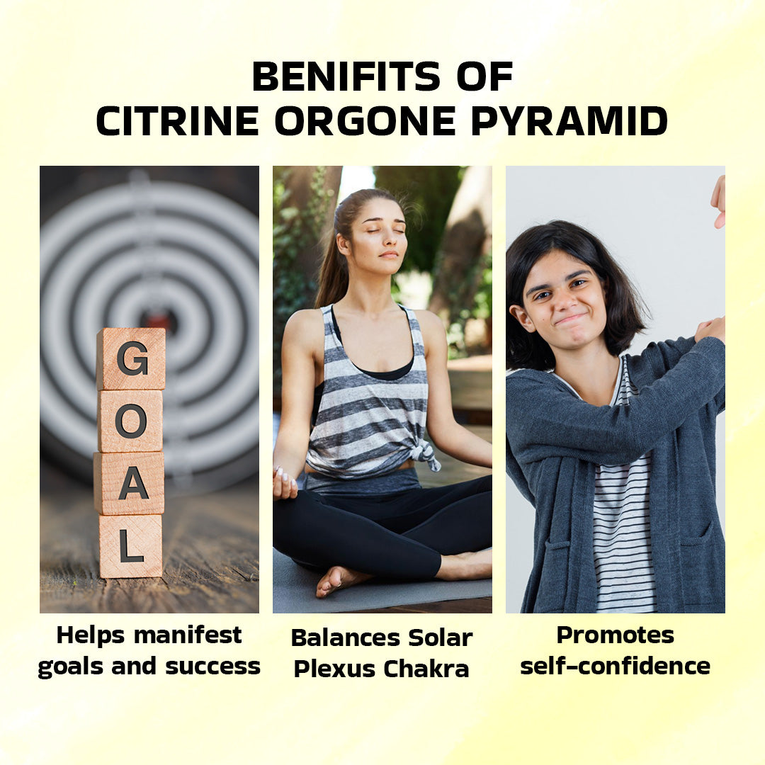 Reiki Healing & Vastu Feng Shui Yellow Citrine Orgone Pyramid - Manifestation, Success & Prosperity
