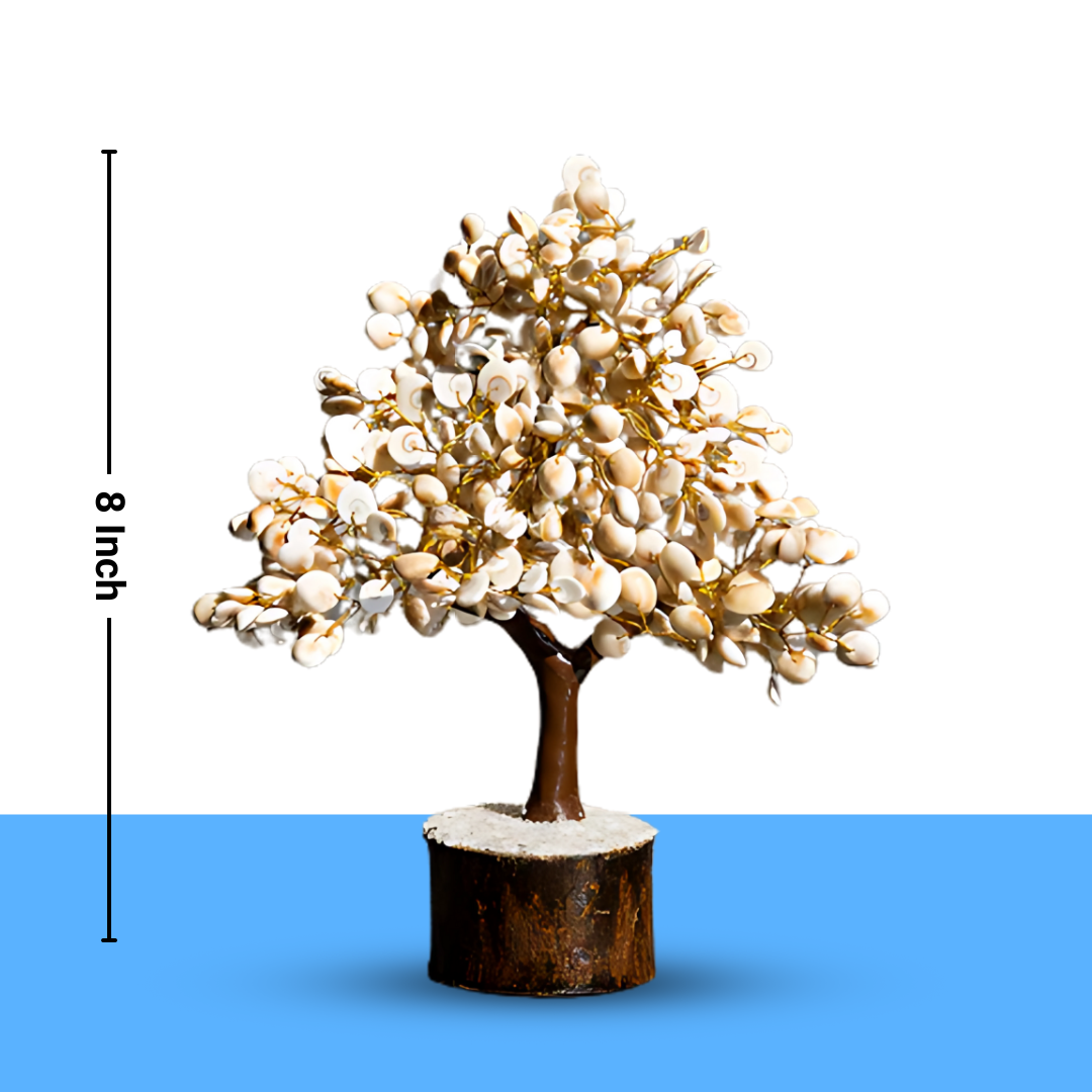 Crystal Gomati Chakra Tree with Original Gomti Chakra – Good Luck & Positive Energy | Home Décor (100 Beads, White Crystal)