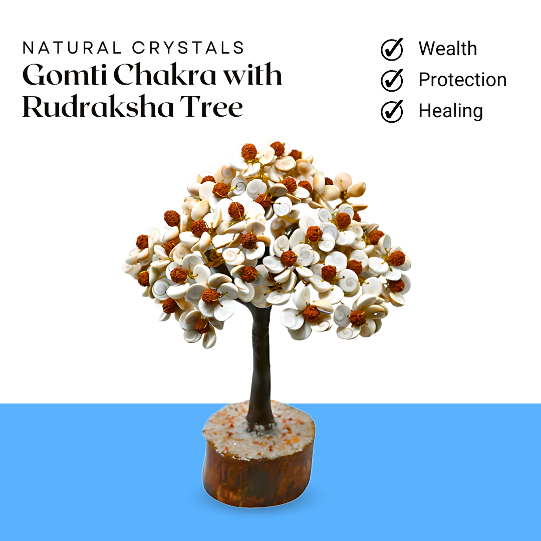 The Gomati Chakra with Rudraksha Tree is a sacred and powerful healing crystal accessory designed to attract positive energy, protection, and prosperity. Handcrafted with natural Gomati Chakras and authentic Rudraksha beads, this Rudraksha tree balances energies, enhances Vastu and Feng Shui, and promotes harmony, good fortune, and spiritual growth. Perfect for home, office, or gifting, this showpiece combines spiritual benefits with elegant design, making it an ideal accessory to boost energy flow, attract abundance, and support holistic well-being.