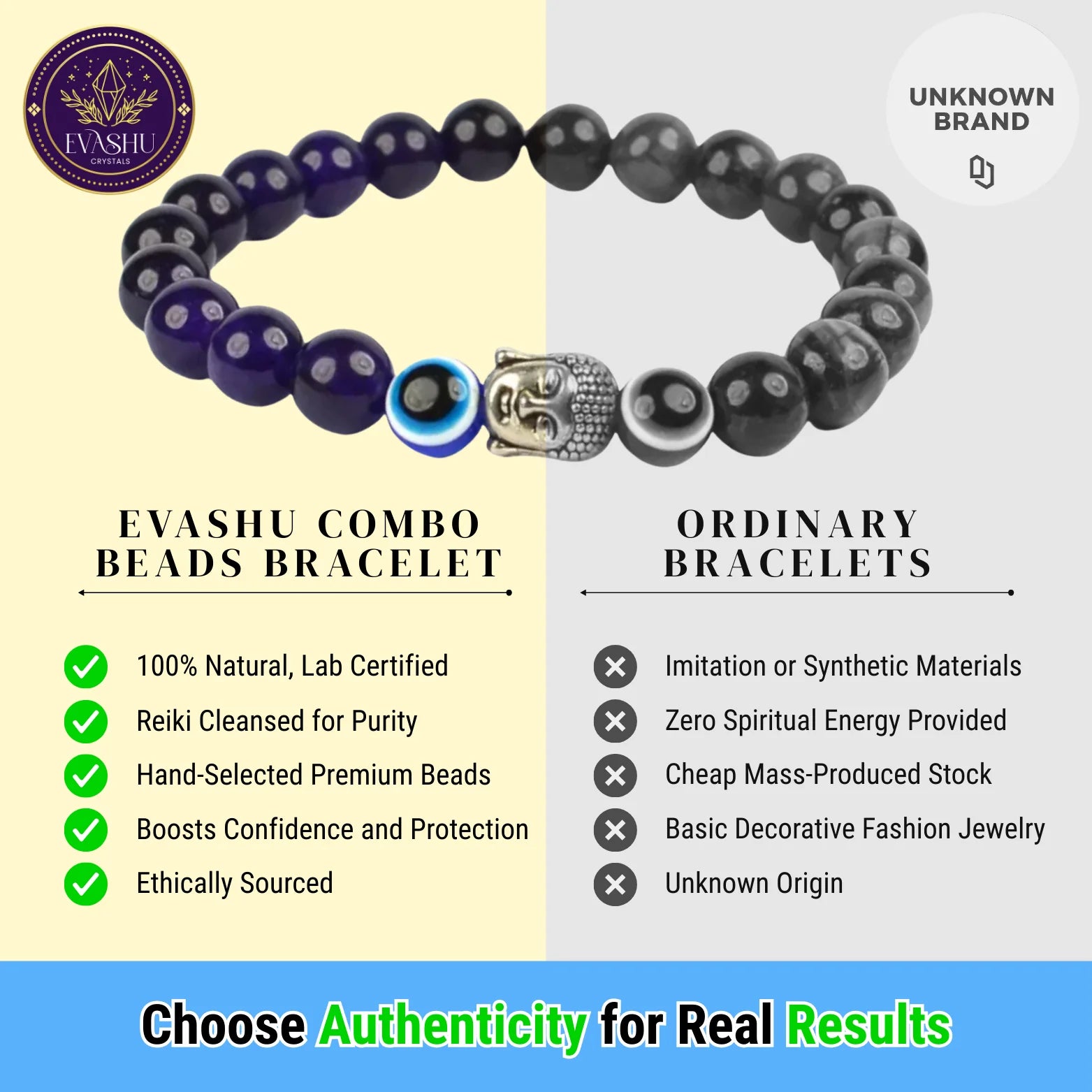 This Certified Tiger Eye, Amethyst & Evil Eye Bracelet is a powerful healing stone bracelet that blends courage, balance, and protection in one elegant unisex bracelet. The Tiger Eye bracelet boosts focus and confidence, the Amethyst bracelet promotes calm and mental clarity, and the Evil Eye bead shields against negative energy. Perfect as a positive energy bracelet or gemstone bracelet, it is ideal for daily wear, meditation, spiritual practice, or gifting to loved ones, nurturing mindfulness, emotional stability, and overall well-being.