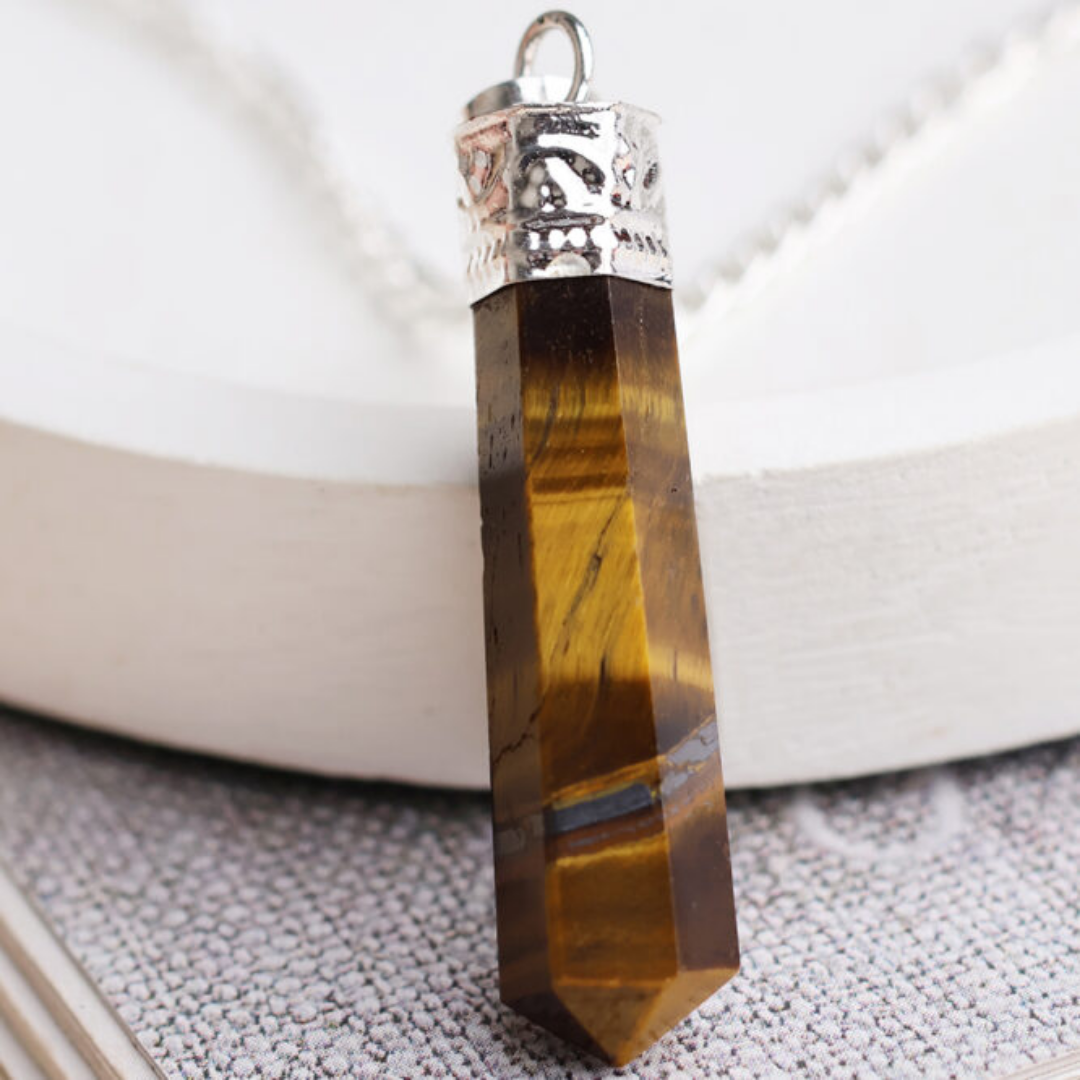 The Eye of the Tiger Pendant is a beautiful healing crystal pencil necklace that brings protection, confidence, and focus to your day while adding a touch of style.