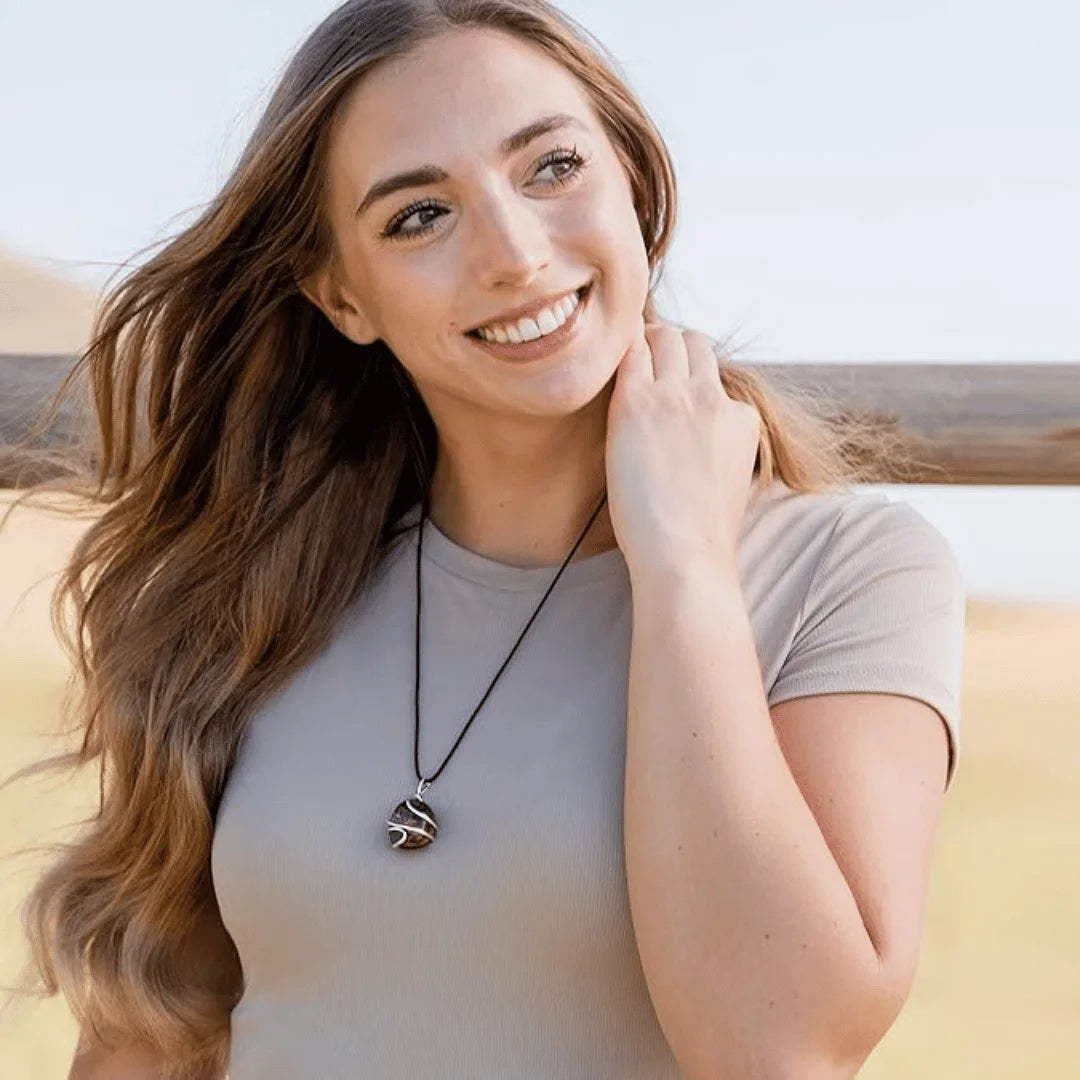 This pendant features a natural Tiger Eye crystal in a smooth tumble shape, known as the Stone of Protection and Confidence. Its rich golden-brown luster and chatoyancy effectively enhances focus, instills courage, and provides powerful protection against negative influences. Tiger Eye connects the energy of the Earth and Sun, promoting vitality and practical decision-making. This pendant is essential for staying grounded, motivated, and clear-sighted throughout your day.