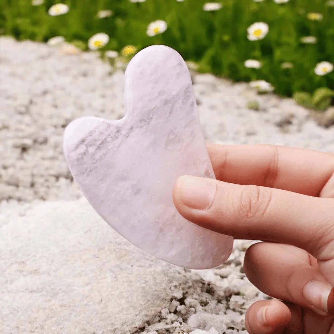 Clear Quartz Gua Sha tool for face care, promoting lifting, amplification, and skin vitality.